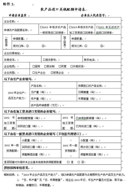2、农产品进口关税配额申请表