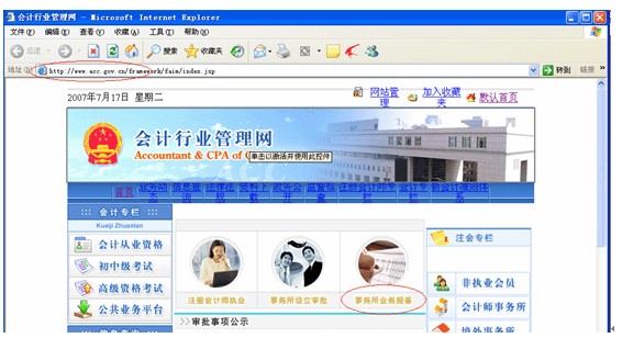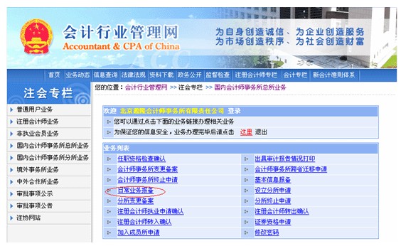 1.登陆会计行业管理网(www.acc.gov.cn),点击“事务所业务报备”