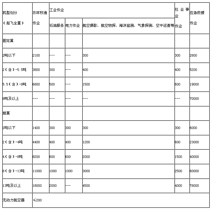 第六条 通航企业开展通航作业,按不同机型、不同起飞全重、不同作业类别,执行不同的补贴标准。作业时间以作业区内实际生产作业小时为准,调机时间不计算在内。